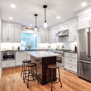 Installing wall cabinets frees up counter space, adds additional storage space and improves the look and functionality of your kitchen. Marked with all white kitchen with stainless appliances plus. White kitchen cabinets with stove and hood. The surface is rather eye catching when it used in a kitchen that has stark white cabinets and stainless steel appliances please enjoy this collection of some our favorite designs! In this picture, we can see white shaker cabinets used perfectly well with rustic vent panel and farmhouse orb pendant chandeliers.